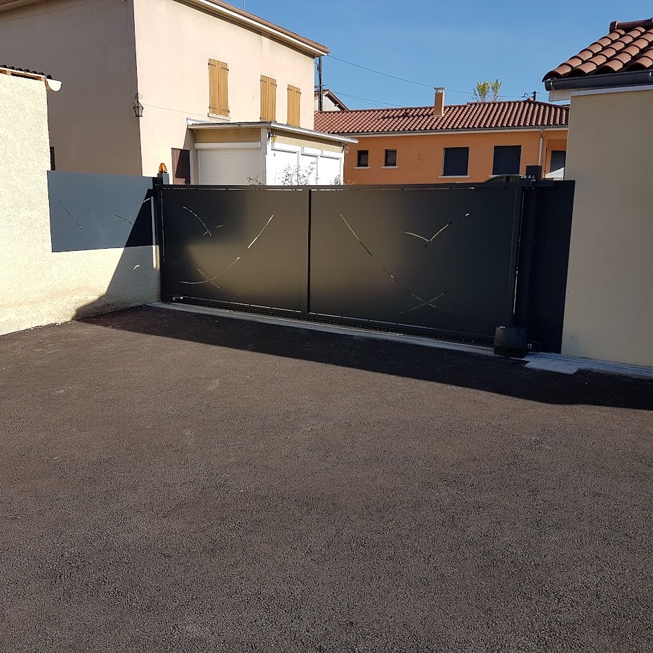 Portail coulissant finitions sobre et détails texturés
